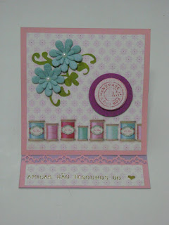 Nesta fotografia, vê-se o papel de dentro, com corações em ponto de cruz, adequado à "onda" de ponto cruz que ando a surfar...E uma etiqueta condizente para escrever os desejos de Boas Festas. Tem ainda um Sentiment Stamp "25 de Dezembro", mas ficou de fora da fotografia. O meu próximo workshop podia ser de fotografia...