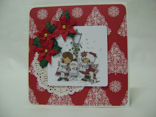 Olá a todos! Hoje venho mostrar-vos um postalito de Natal, muito simples, feito com papéis da colecção "Home for Christmas" e um card top do "Lilly of the Valley", que me deu muito prazer em fazer.